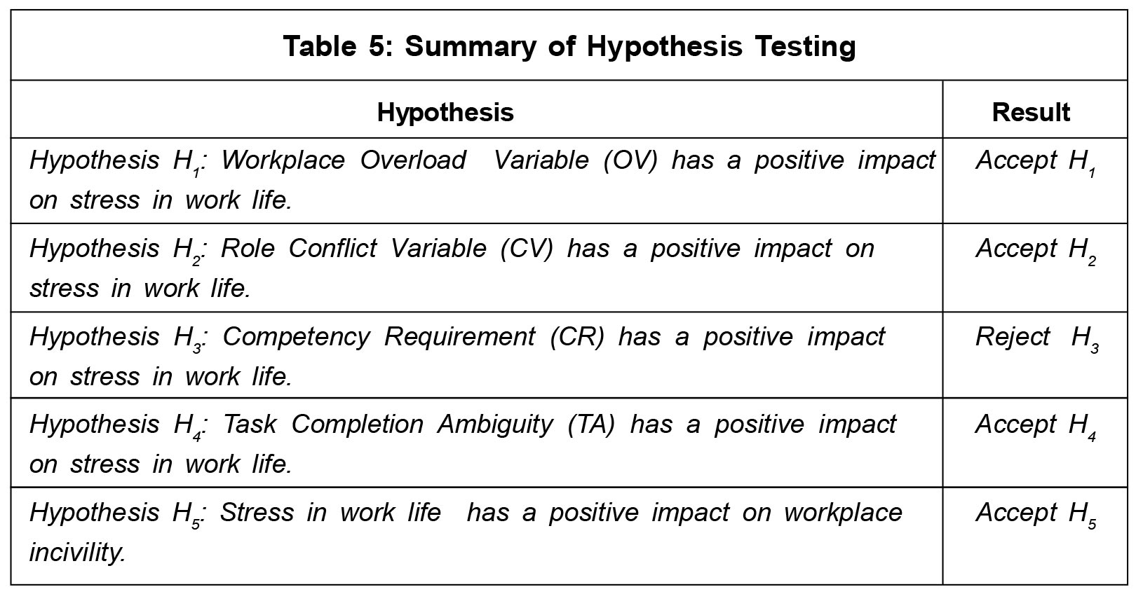 Hypothesis H5: Stress in the workplace has a positive impact on workplace incivility.