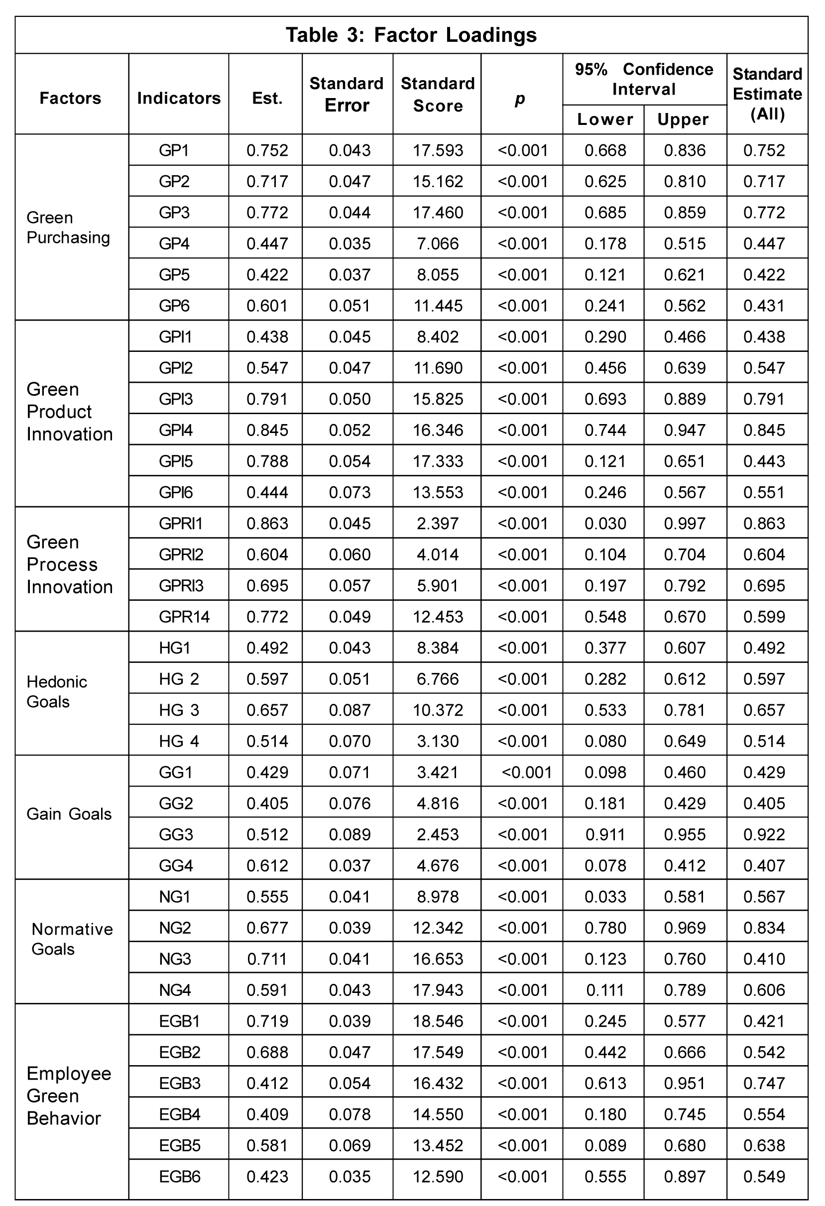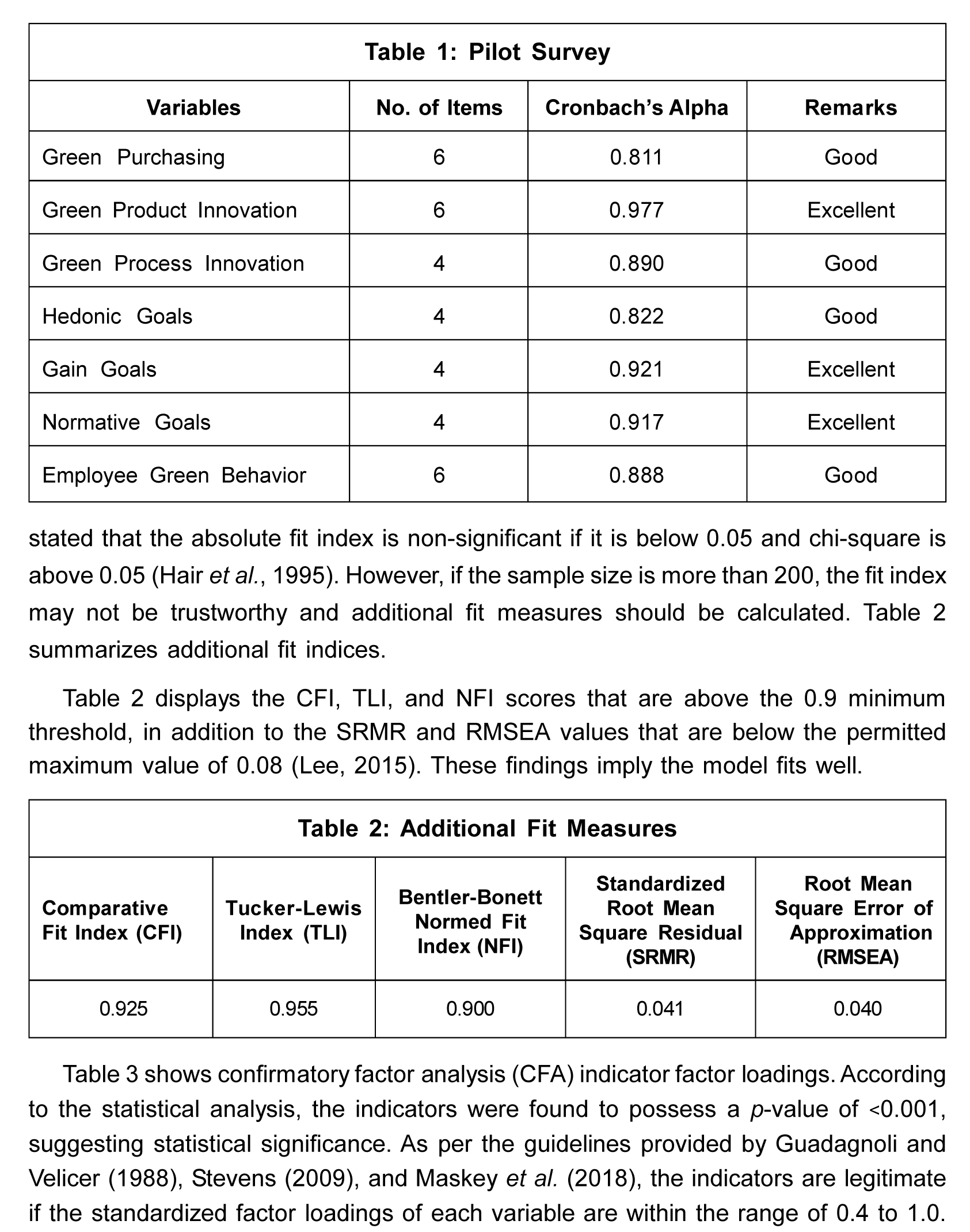 Preliminary research with 30 green hotel employees assessed the questionnaire's accuracy and dependability. According to Nunnally (1978), Wells and Wollack (2003) and Lehman and Norm (2005), Cronbach's alpha must be greater than or equal to 0.70. The range of measured Cronbach's Alpha values was between 0.82 and 0.97, which satisfies this requirement. The results of reliability tests are displayed in Table 1.
