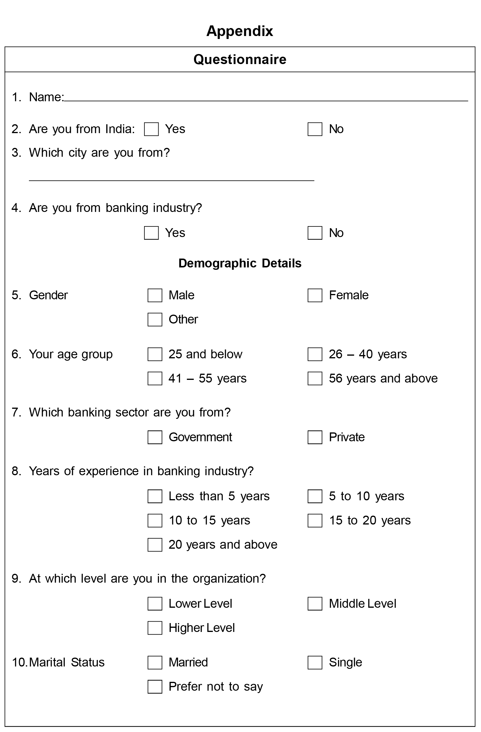 This study is exploratory in nature and employs a descriptive research methodology, collecting and analyzing primary data through a structured questionnaire administered via a survey technique. Responses were collected using convenient and quota sampling techniques. Quota sampling technique was utilized so that we could compare different subgroups and get a clear picture of the effect of emotional intelligence on work satisfaction among professionals working in the banking sector. Due to the ongoing pandemic situation, the data collection was primarily conducted through online mode. A link to the questionnaire (see Appendix) was created using a web survey tool (Google Form), and a well-structured, sequentially organized questionnaire was posted on social media (LinkedIn and Facebook), and was also delivered to prospective respondents' email addresses and WhatsApp numbers. They responded through the e-link. Due to the Covid-19 pandemic, only online data collection techniques were utilized, and no physical questionnaires were sent to respondents. Any employee working in the banking industry (both government and private banks) across the country could participate in the study. There were two sections in the questionnaire. The first section collected demographic data from the respondents, and the second elicited responses about emotional intelligence and its effect on work satisfaction among banking professionals. In all, 600 responses were received within the specified time frame. All respondents answered the same questions.