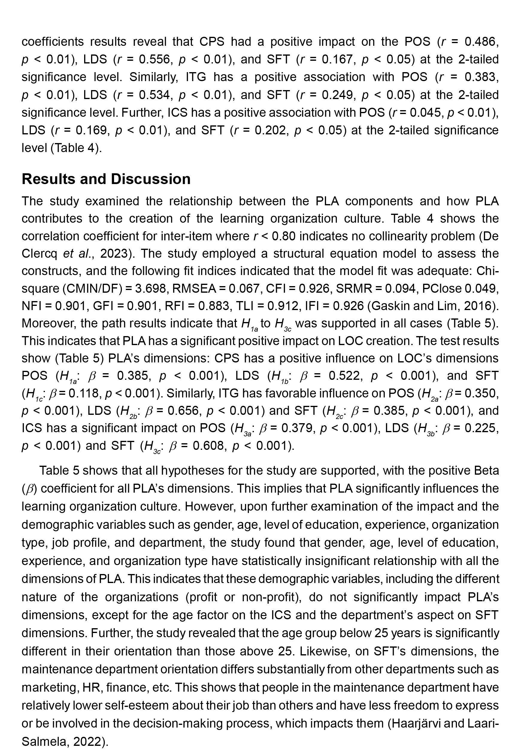 Limitations and Future Scope: The study has several shortcomings, which may open new directions for future research. This study is non-experimental exploratory research using cross-sectional data for analysis. This limits the scope of the investigation and draws an explicit framework for PLA. Moreover, the data was randomly collected from a pool of organizations. This may lead to the problem of generalization, as the nature of operation and ethos are unique from sector to sector. Moreover, the data skews slightly with regard to gender, age, and senior management representation. Therefore, in future studies, this aspect can be taken into consideration. Moreover, the PLA model itself is new and needs further research to validate its effectiveness.