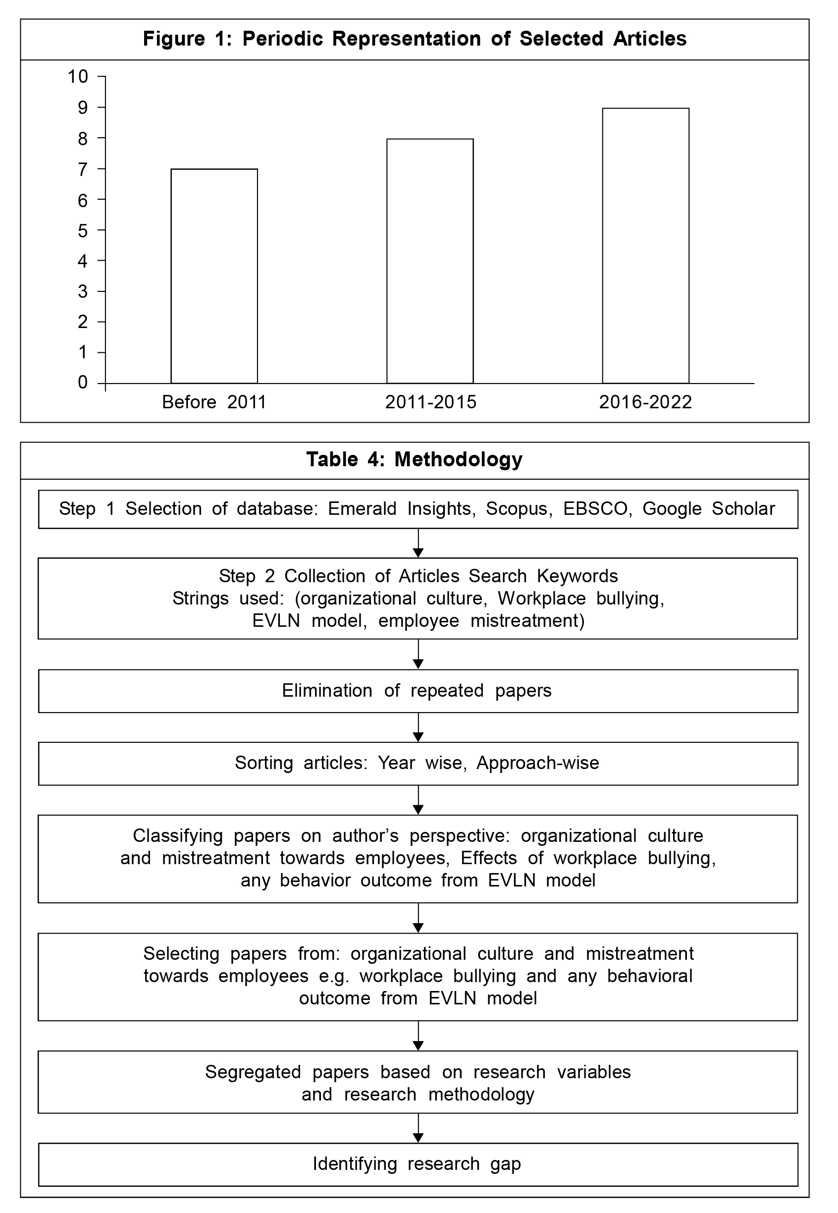 The study adopted secondary method for the collection of information. Platforms such as Google Scholar, Jstor, Wiley Online Library, EBSCO, Scopus, Emerald-Insight, etc., which cover the literature on organizational culture, workplace bullying, EVLN model, and employee mistreatment, were considered. A total of 126 papers were initially gathered. These papers were then screened for duplication, resulting in the remaining pool of 101 unique articles. The publications were then categorized by the authors, and particularly those articles that focused on culture and at least one outcome of workplace bullying and the EVLN framework were selected. This screening process resulted in a final selection of 49 papers. The authors then meticulously reviewed each paper's abstract and evaluated its applicability to the current investigation and finalized a set of 24 papers for in-depth study and analysis, which ultimately formed the basis for drawing conclusions.