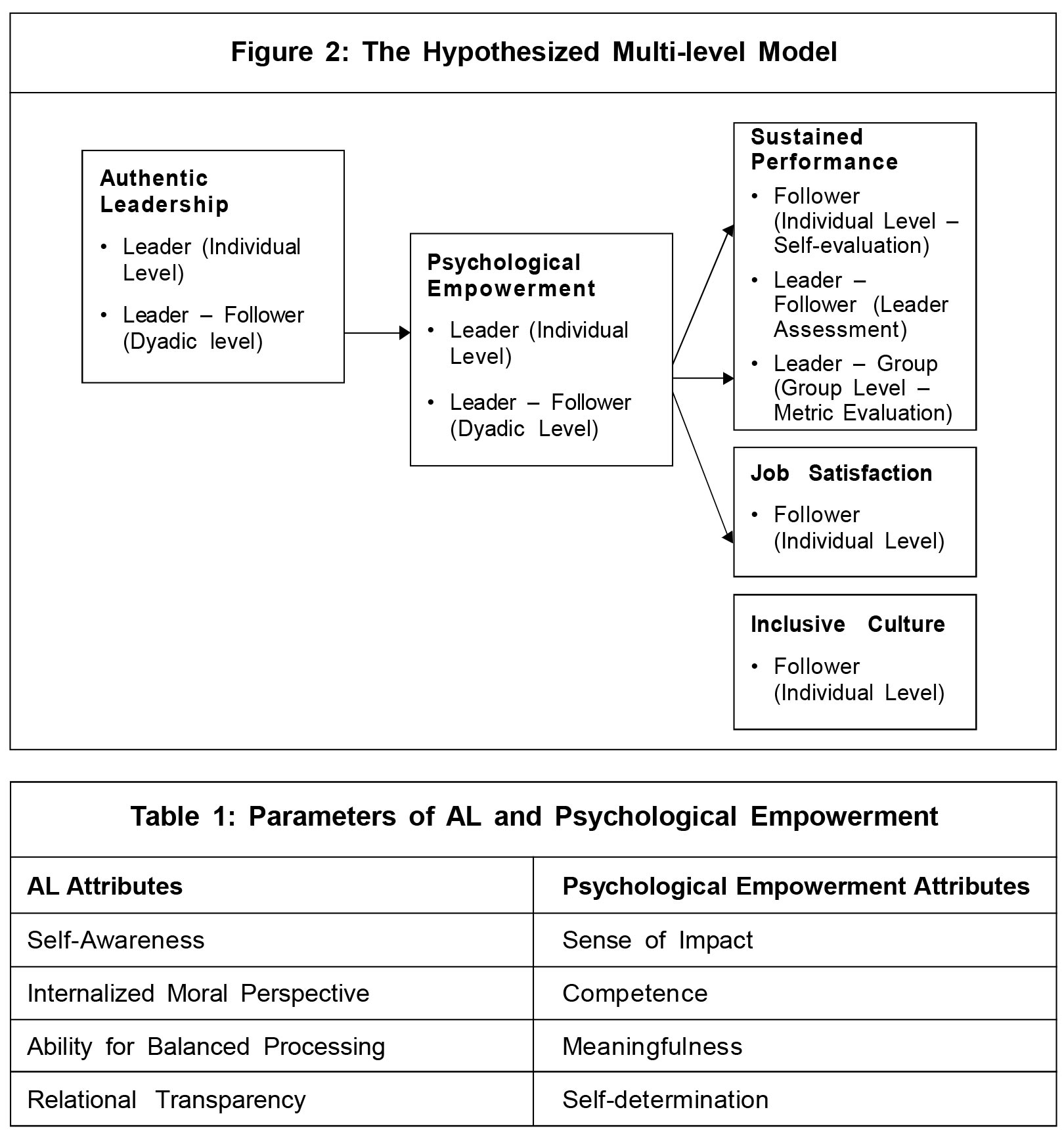With disruptions due to technology/transformations and changing market/client landscapes, organizations are constantly adapting to keep up with the external environment. This in turn is driving organizations to be nimble, agile, and flexible in their structures and people practices. The need for the study in the emerging field of Authentic Leadership points to the need for organizations to focus on authentic leadership to create impact, build culture and influence the teams towards achieving the organizational objectives. The paper examines the research on AL and its impact on key variables of sustained performance, job satisfaction and inclusive culture. The paper is unique compared to prior research due to the inclusion of the role of psychological empowerment beyond the structural empowerment discussed in prior research. The paper presents a detailed literature review, key definitions of the variables and multi-level perspectives of the variables. It also provides the prior research measures and tools used to establish the relationship of various variables with Authentic Leadership. The paper concludes with multiple hypotheses to be studied for establishing the impact of psychological empowerment on the AL components, if any.