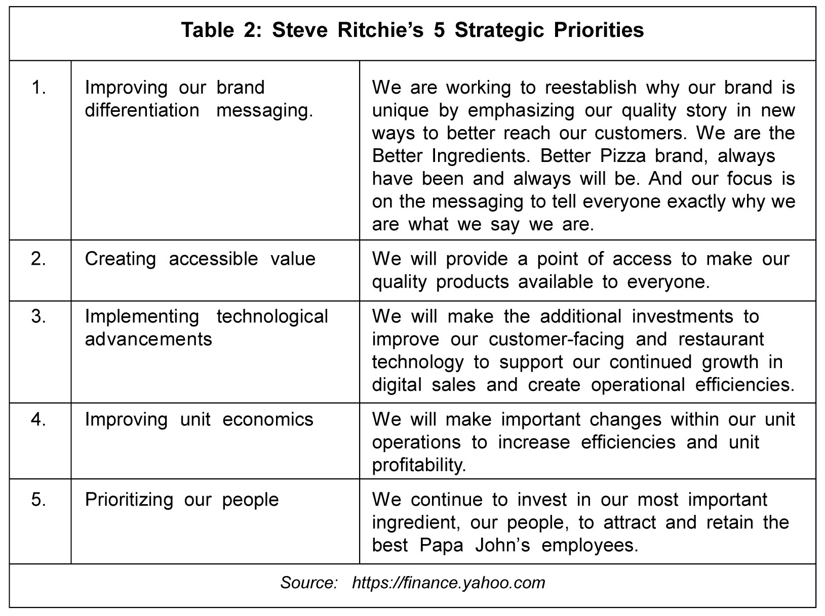 The company's pizza was more expensive than those of its competitors. With consumers willing to pay a little more for the company's slogan, "better ingredients, better pizza." Papa John's had long prided itself on maintaining a 'premium' position. Year 2017, however, was a challenging one for Papa John's. The sales of the pizza chain were declining. Experts attributed the fall to the company's declining pizza quality and the rapid expansion of better-quality pizza chains.