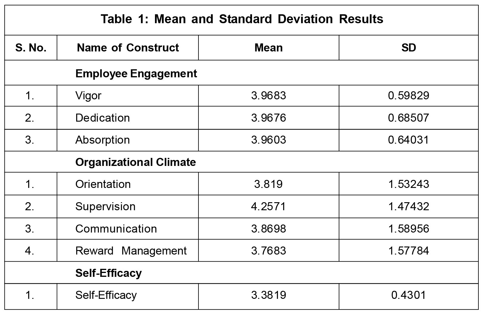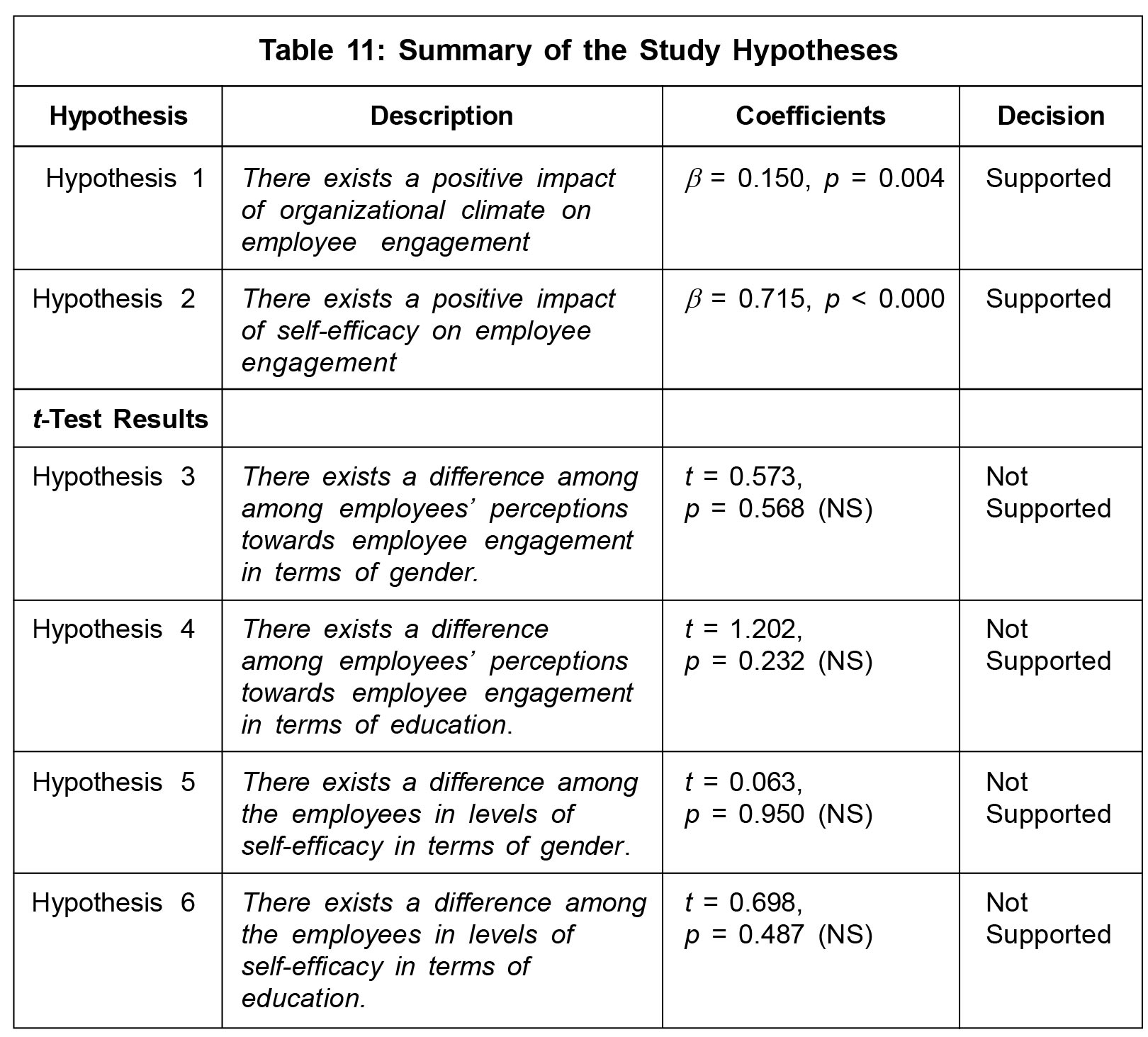 employees become more engaged in their job. This study confirms that both organizational climate and self-efficacy act as significant positive predictors of employee