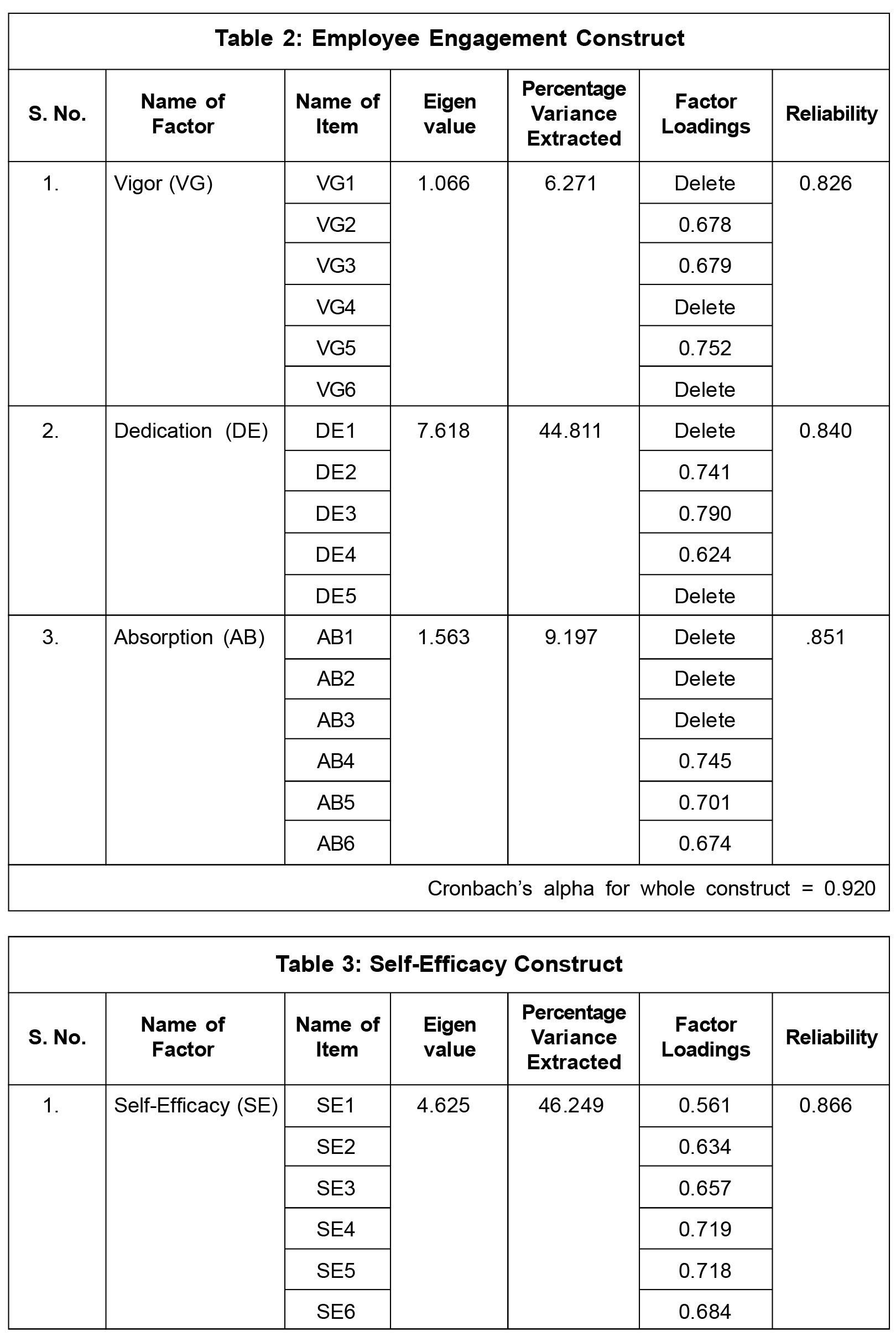 employee engagement and self-efficacy as the t-value is found to be insignificant. It also