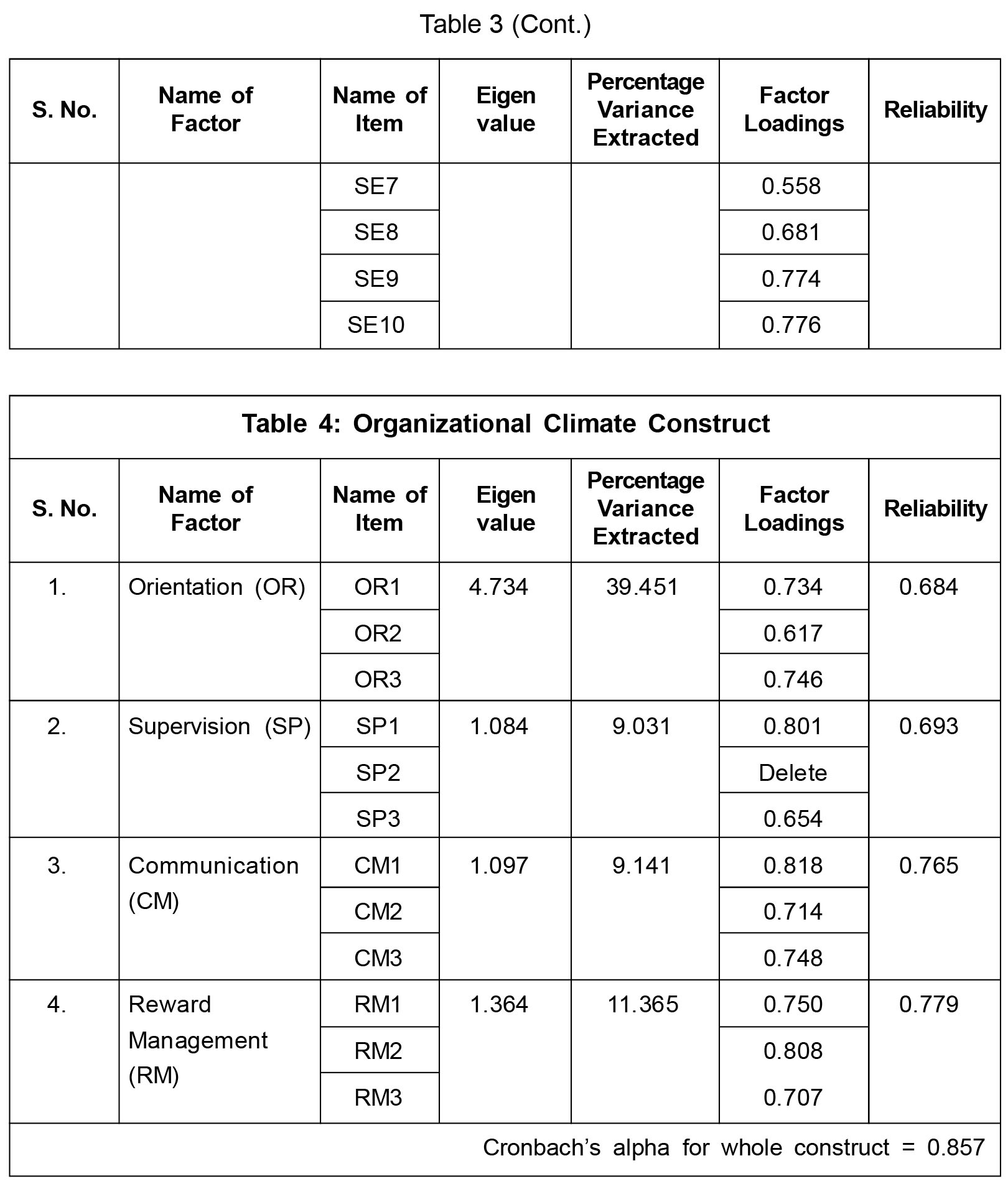 with their respective constructs. Finally, it can be seen from Table 9 that organizational