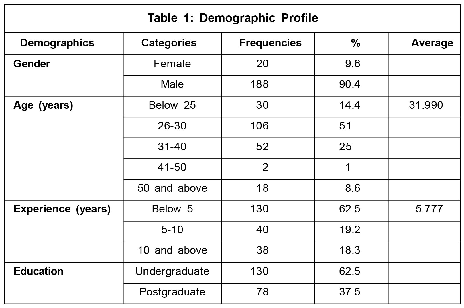 Finally, 208 questionnaires were found appropriate for the study and used for further analysis,