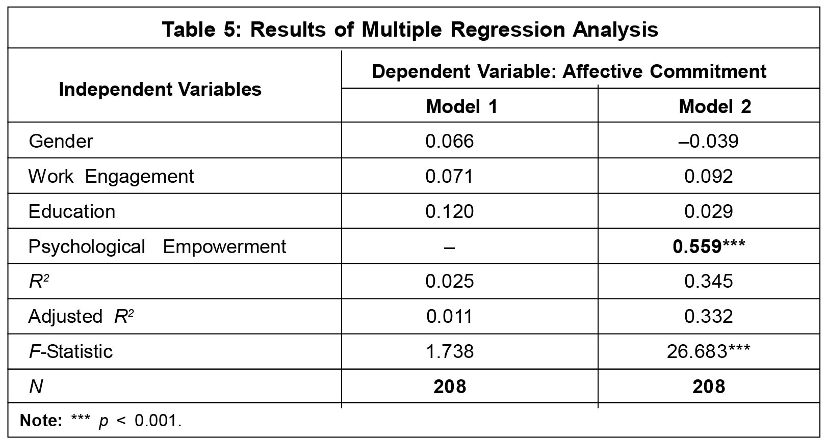 commitment is shown. It is obvious from model 2 that psychological empowerment has