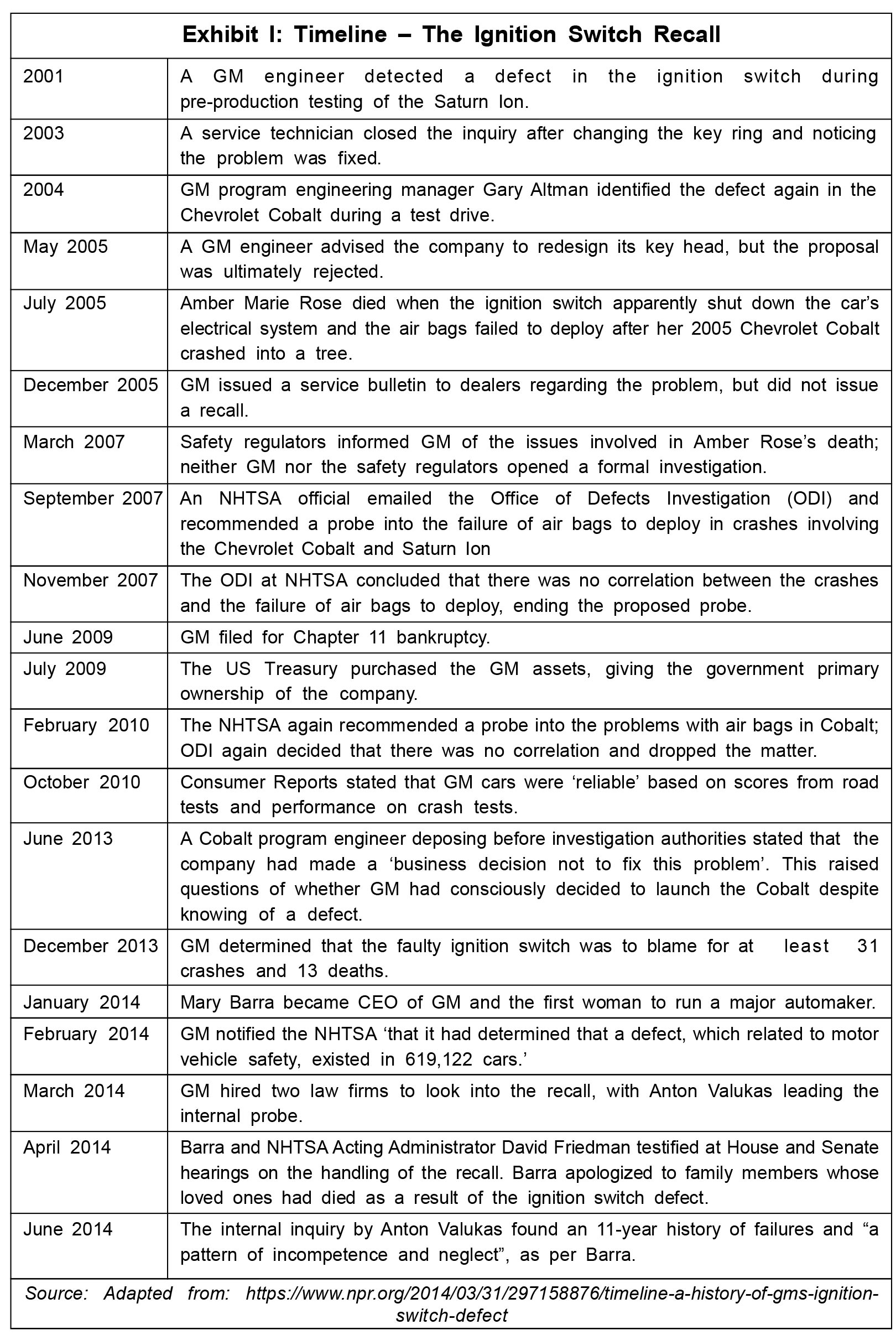 Mary Barra (Barra), who assumed the CEO role on January 15, 2014, wanted to prevent the reccurrence of such a situation in future. In March 2014, Barra appointed a law firm,