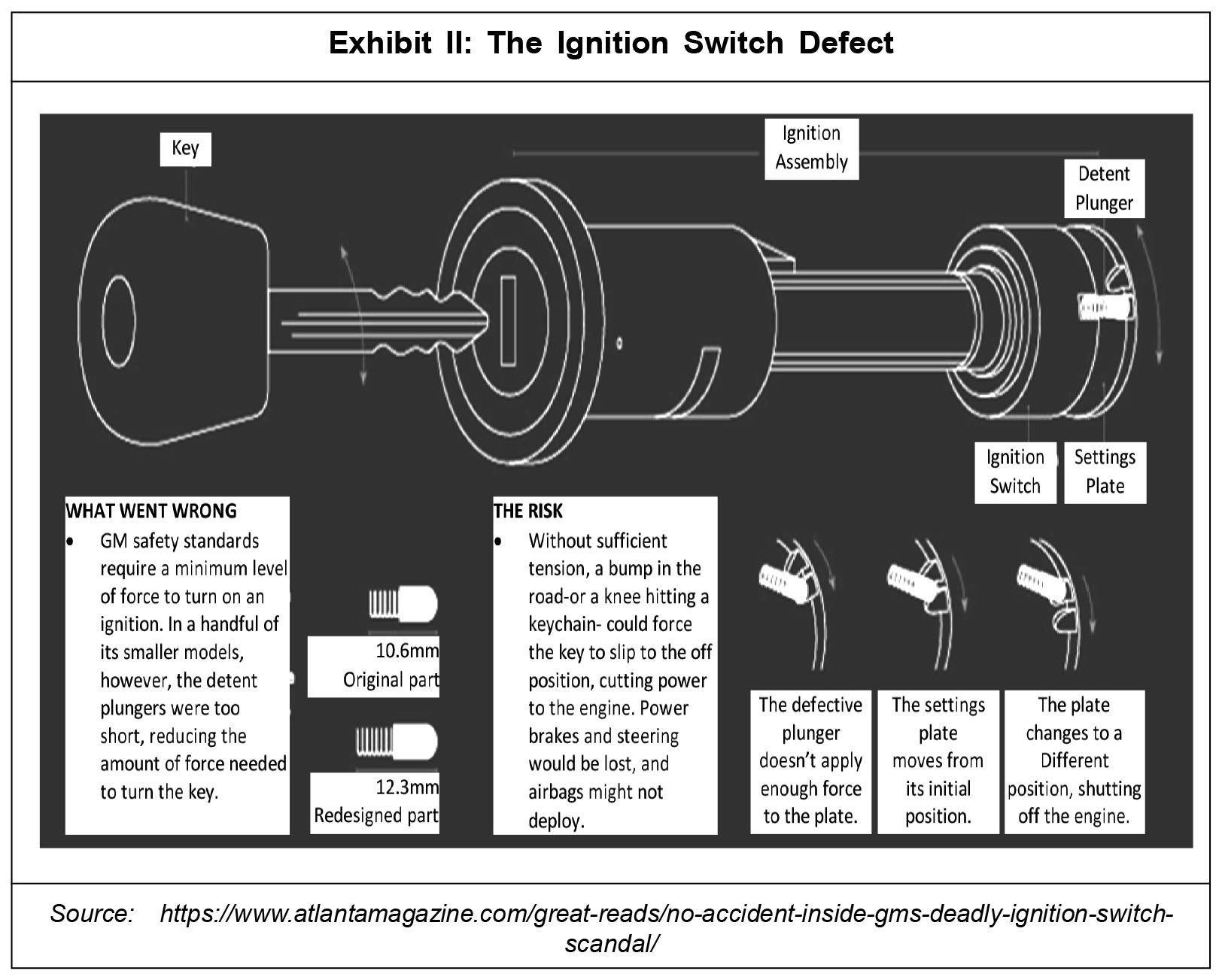 As early as 2007, GM again started tracking incidents of the air bags not deploying in car crashes involving the Cobalt. Along with GM, the NHTSA was also evaluating concerns related to the Cobalt. The NHTSA, however, did not look at the ignition switch problem and restricted its investigation to only airbag non-deployment. In 2011 and 2012, GM assigned two different groups of engineers to examine the problem. However, it was not until December 2013 that the company finally put the pieces together and linked the problems of the non-deployment of air bags to the faulty ignition switch problem. This was almost 10 years after customers had first told GM about problems with the Cobalt ignition switch (see Exhibit II for the technical details of the ignition switch defect). In February 2014, GM formally notified the NHTSA about the ignition switch issue that existed in its Cobalt and a few other car models manufactured between 2005 and 2007.