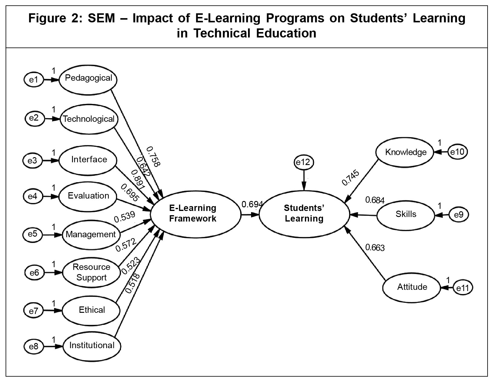 Limitations and Future Scope: The study is contextual as it analyzes the effect of e-learning framework on students' learning in technical education only. It can be extended to other courses/fields of education at different levels of education.