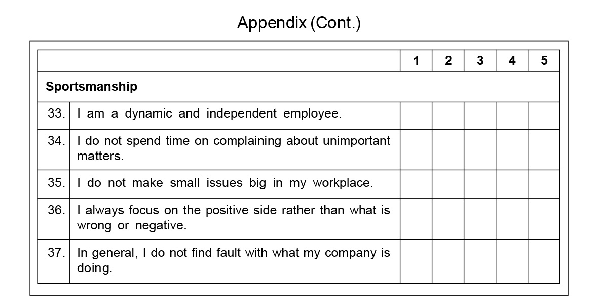 The term OCB was first used by Organ in 1977. OCB refers to behavior that is not formally requested or directly rewarded but can be functional to an organization's operations (Smith et al., 1983). According to Organ et al. (2006), OCB is an employee's discretionary behavior that is not directly or explicitly recognized by the formal reward system and efficiently and effectively promotes the organization's performance. Organ (1988) identified five dimensions of OCB: conscientiousness, sportsmanship, civic virtue, courtesy, and altruism.