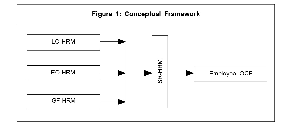 Hence, based on the literature review, this study proposes a conceptual framework that shows the relationship between SR-HRM and OCB (see Figure 1).