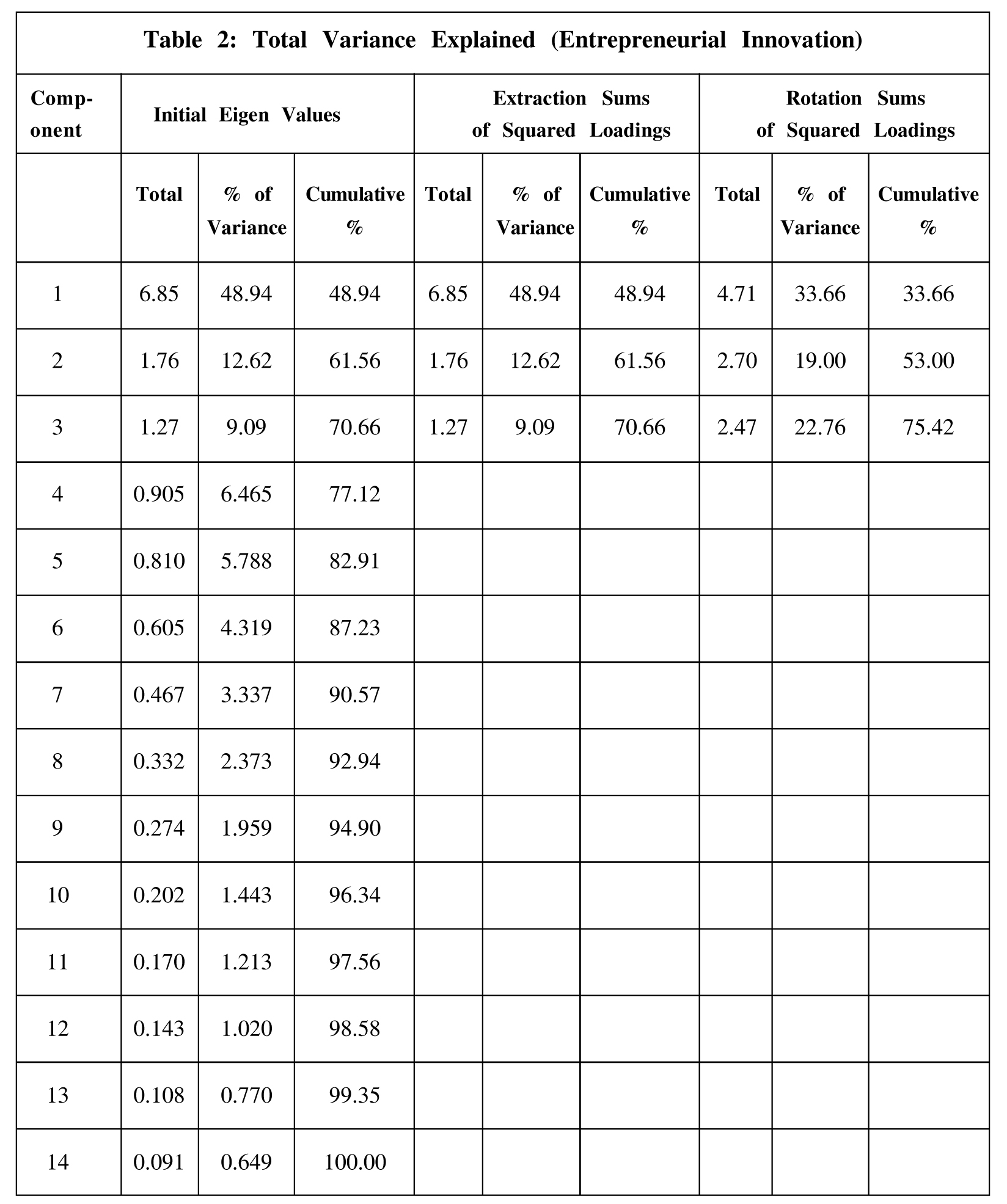 From the rotated component matrix (Table 6), it was found that factor 1 has three items mainly related to the performance of production and hence labeled as production performance. Factor 2 has three items and is labeled as innovative performance and factor 3 and factor 4 have possessed four and three items each and are labeled as financial performance and marketing performance.
